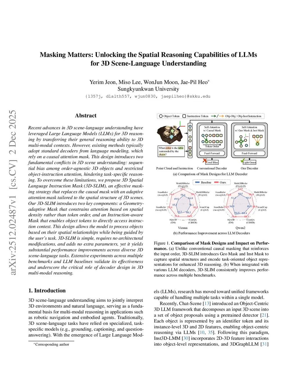 Masking Matters: Unlocking the Spatial Reasoning Capabilities of LLMs for 3D Scene-Language Understanding