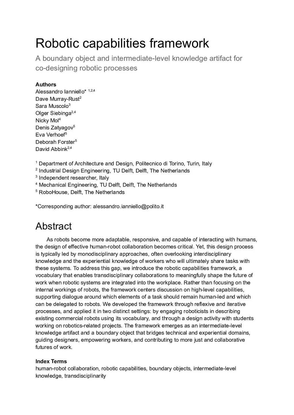 Robotic capabilities framework: A boundary object and intermediate-level knowledge artifact for co-designing robotic processes