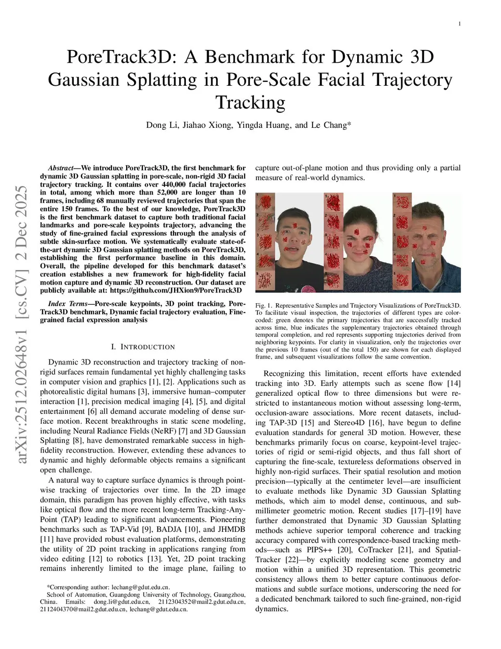 We introduce PoreTrack3D, the first benchmark for dynamic 3D Gaussian splatting in pore-scale, non-rigid 3D facial trajectory tracking. It contains over 440,000 facial trajectories in total, among which more than 52,000 are longer than 10 frames, including 68 manually reviewed trajectories that span the entire 150 frames. To the best of our knowledge, PoreTrack3D is the first benchmark dataset to capture both traditional facial landmarks and pore-scale keypoints trajectory, advancing the study of fine-grained facial expressions through the analysis of subtle skin-surface motion. We systematically evaluate state-of-the-art dynamic 3D Gaussian splatting methods on PoreTrack3D, establishing the first performance baseline in this domain. Overall, the pipeline developed for this benchmark dataset's creation establishes a new framework for high-fidelity facial motion capture and dynamic 3D reconstruction. Our dataset are publicly available at:this https URL