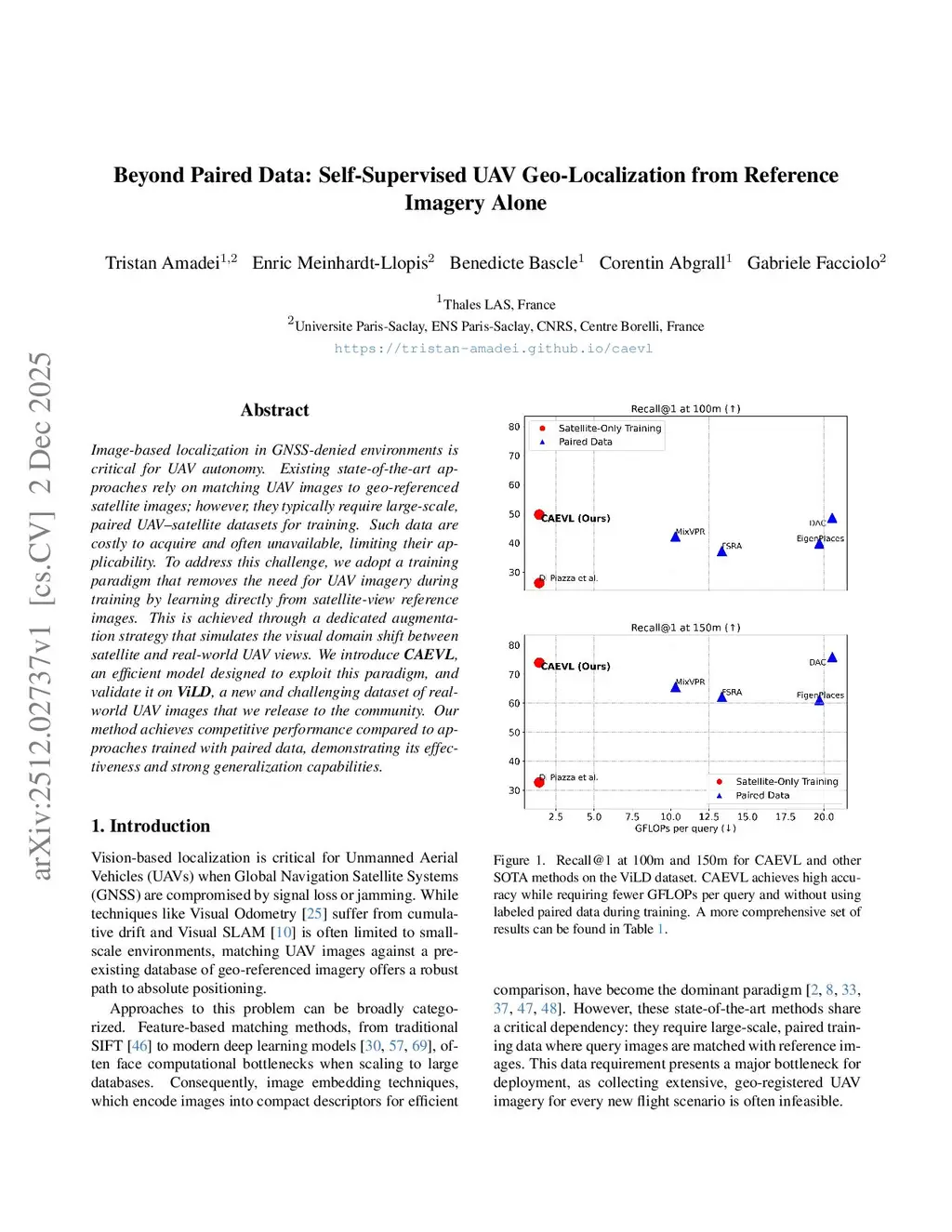 Image-based localization in GNSS-denied environments is critical for UAV autonomy. Existing state-of-the-art approaches rely on matching UAV images to geo-referenced satellite images; however, they typically require large-scale, paired UAV-satellite datasets for training. Such data are costly to acquire and often unavailable, limiting their applicability. To address this challenge, we adopt a training paradigm that removes the need for UAV imagery during training by learning directly from satellite-view reference images. This is achieved through a dedicated augmentation strategy that simulates the visual domain shift between satellite and real-world UAV views. We introduce CAEVL, an efficient model designed to exploit this paradigm, and validate it on ViLD, a new and challenging dataset of real-world UAV images that we release to the community. Our method achieves competitive performance compared to approaches trained with paired data, demonstrating its effectiveness and strong generalization capabilities.