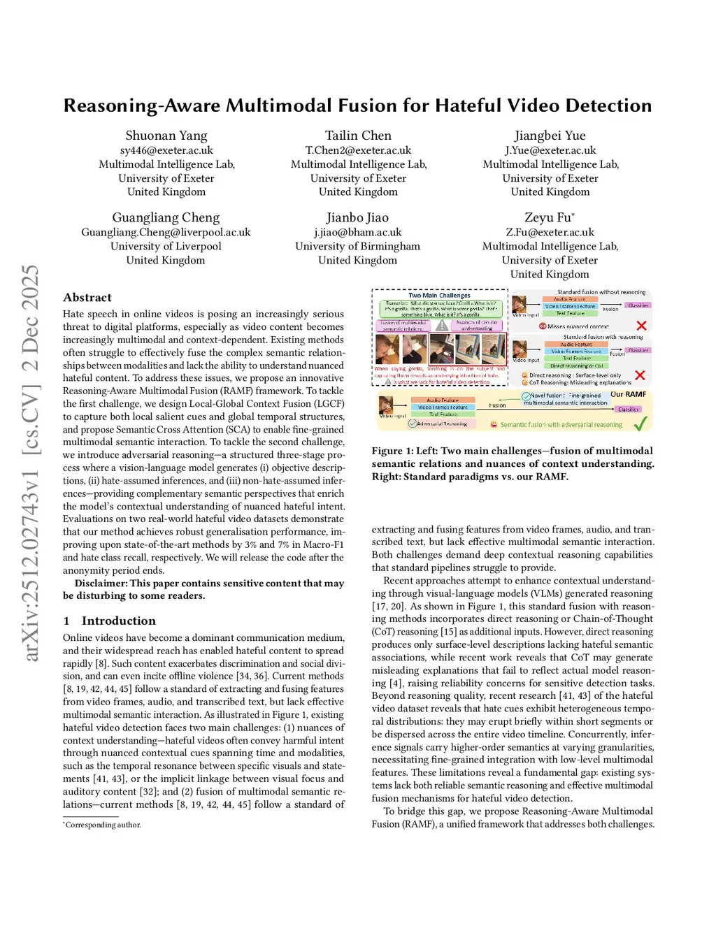 Reasoning-Aware Multimodal Fusion for Hateful Video Detection