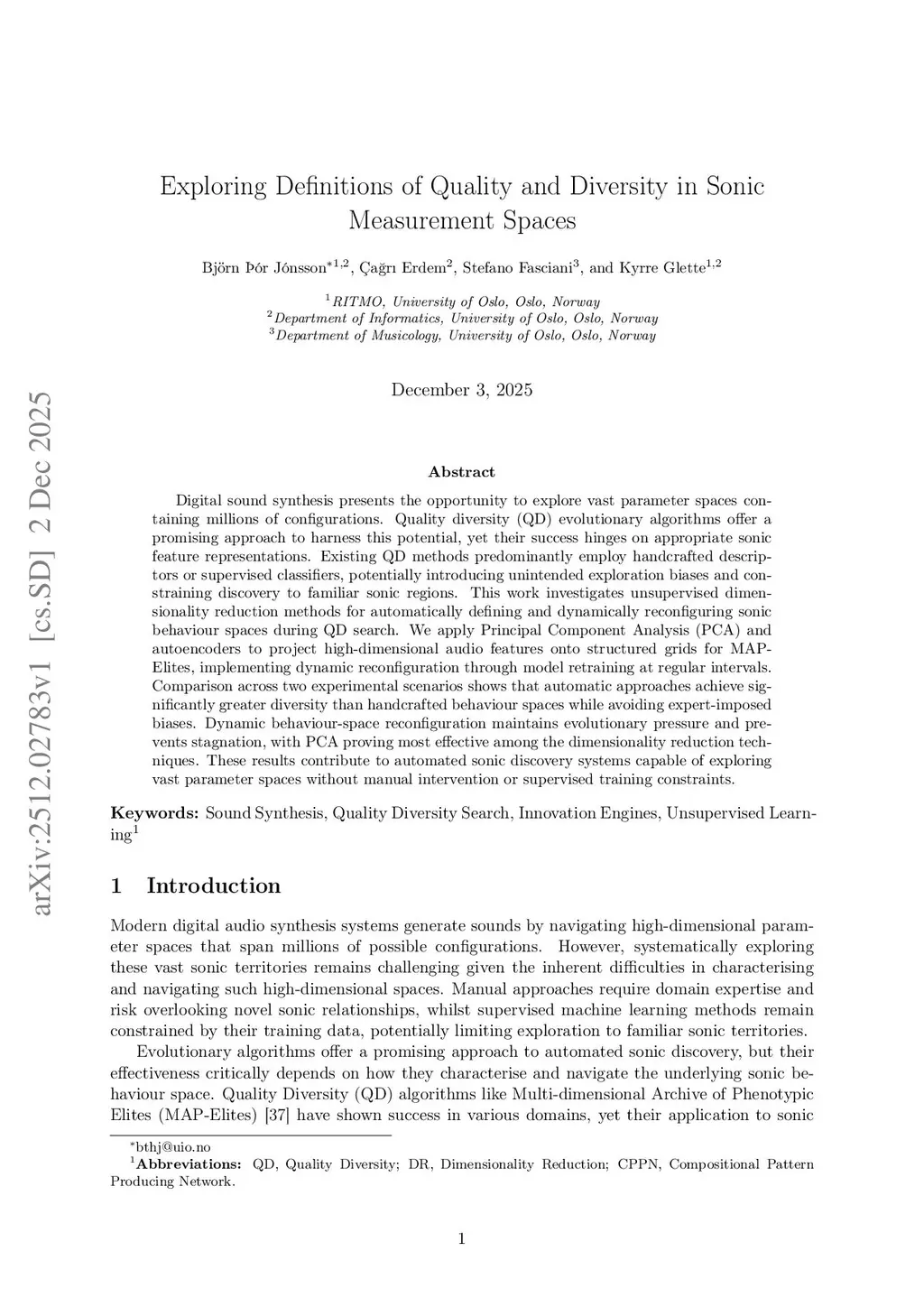 Exploring Definitions of Quality and Diversity in Sonic Measurement Spaces