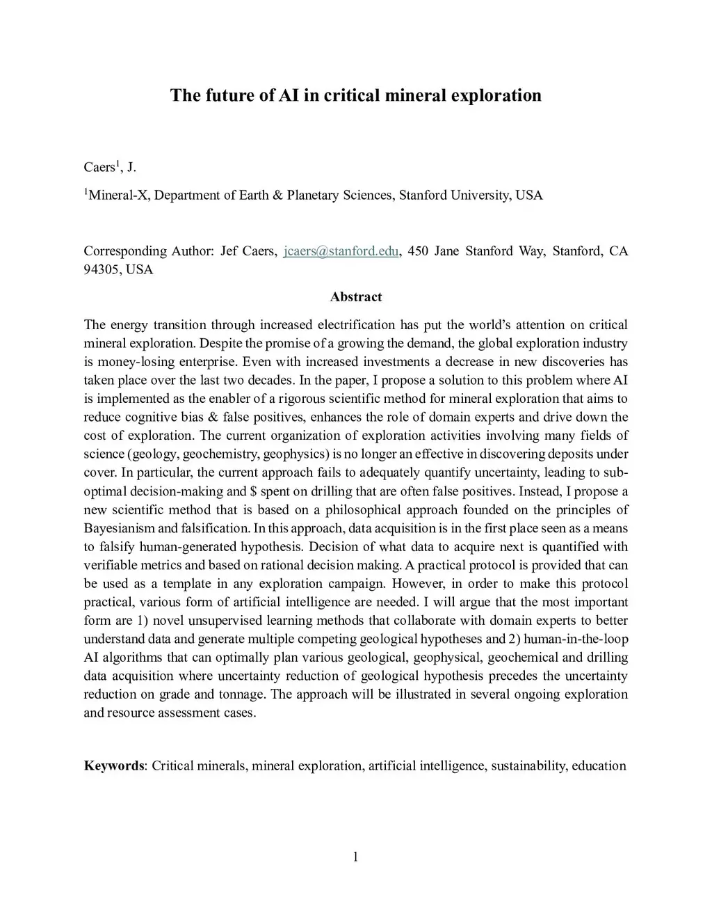 The energy transition through increased electrification has put the worlds attention on critical mineral exploration Even with increased investments a decrease in new discoveries has taken place over the last two decades Here I propose a solution to this problem where AI is implemented as the enabler of a rigorous scientific method for mineral exploration that aims to reduce cognitive bias and false positives drive down the cost of exploration I propose a new scientific method that is based on a philosophical approach founded on the principles of Bayesianism and falsification In this approach data acquisition is in the first place seen as a means to falsify human generated hypothesis Decision of what data to acquire next is quantified with verifiable metrics and based on rational decision making A practical protocol is provided that can be used as a template in any exploration campaign However in order to make this protocol practical various form of artificial intelligence are needed I will argue that the most important form are one novel unsupervised learning methods that collaborate with domain experts to better understand data and generate multiple competing geological hypotheses and two humanintheloop AI algorithms that can optimally plan various geological geophysical geochemical and drilling data acquisition where uncertainty reduction of geological hypothesis precedes the uncertainty reduction on grade and tonnage