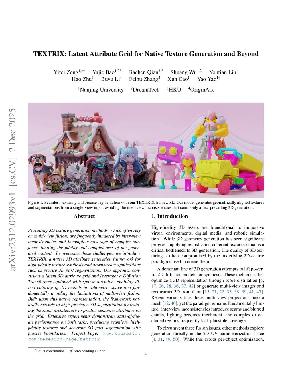 Prevailing 3D texture generation methods, which often rely on multi-view fusion, are frequently hindered by inter-view inconsistencies and incomplete coverage of complex surfaces, limiting the fidelity and completeness of the generated content. To overcome these challenges, we introduce TEXTRIX, a native 3D attribute generation framework for high-fidelity texture synthesis and downstream applications such as precise 3D part segmentation. Our approach constructs a latent 3D attribute grid and leverages a Diffusion Transformer equipped with sparse attention, enabling direct coloring of 3D models in volumetric space and fundamentally avoiding the limitations of multi-view fusion. Built upon this native representation, the framework naturally extends to high-precision 3D segmentation by training the same architecture to predict semantic attributes on the grid. Extensive experiments demonstrate state-of-the-art performance on both tasks, producing seamless, high-fidelity textures and accurate 3D part segmentation with precise boundaries.