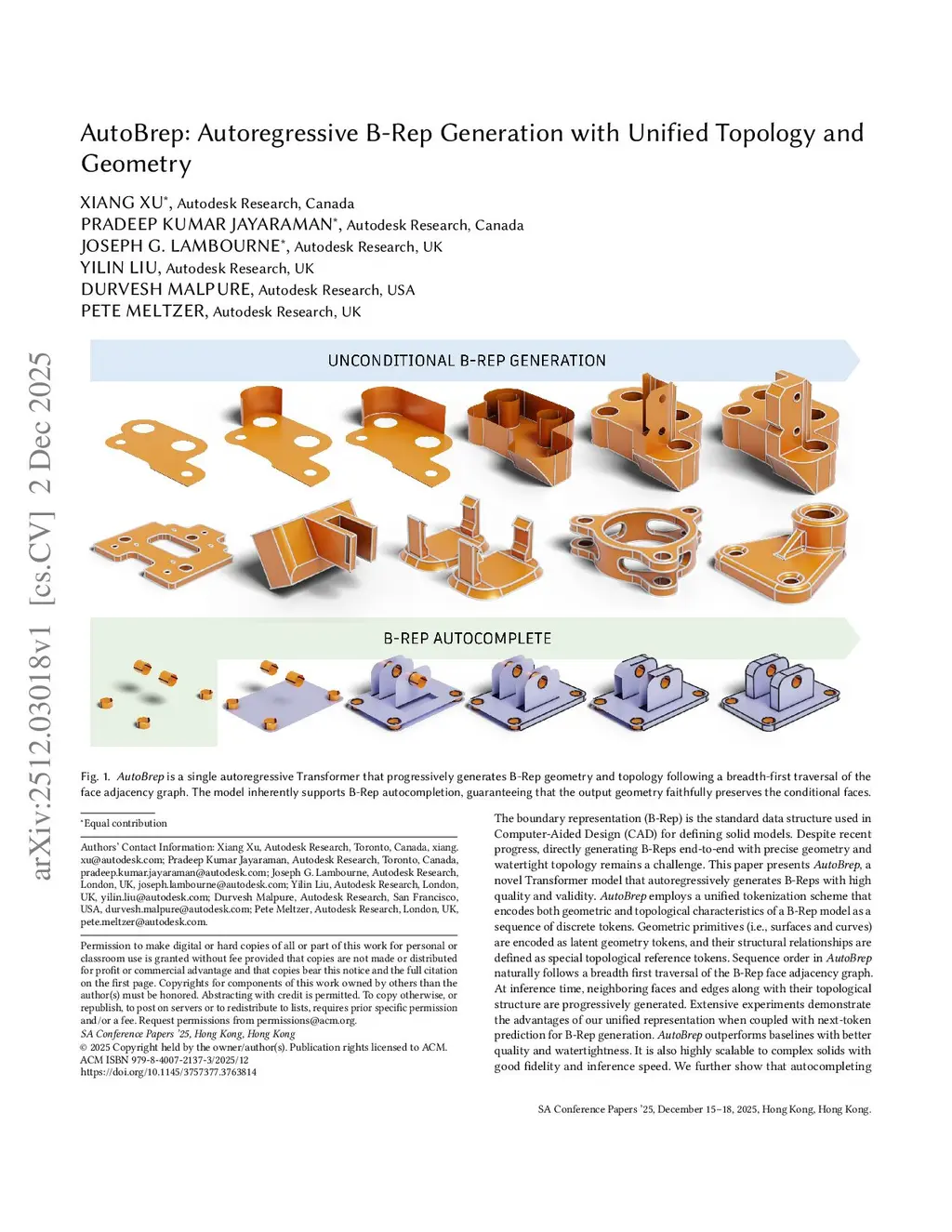 The boundary representation (B-Rep) is the standard data structure used in Computer-Aided Design (CAD) for defining solid models. Despite recent progress, directly generating B-Reps end-to-end with precise geometry and watertight topology remains a challenge. This paper presents AutoBrep, a novel Transformer model that autoregressively generates B-Reps with high quality and validity. AutoBrep employs a unified tokenization scheme that encodes both geometric and topological characteristics of a B-Rep model as a sequence of discrete tokens. Geometric primitives (i.e., surfaces and curves) are encoded as latent geometry tokens, and their structural relationships are defined as special topological reference tokens. Sequence order in AutoBrep naturally follows a breadth first traversal of the B-Rep face adjacency graph. At inference time, neighboring faces and edges along with their topological structure are progressively generated. Extensive experiments demonstrate the advantages of our unified representation when coupled with next-token prediction for B-Rep generation. AutoBrep outperforms baselines with better quality and watertightness. It is also highly scalable to complex solids with good fidelity and inference speed. We further show that autocompleting B-Reps is natively supported through our unified tokenization, enabling user-controllable CAD generation with minimal changes. Code is available atthis https URL.
