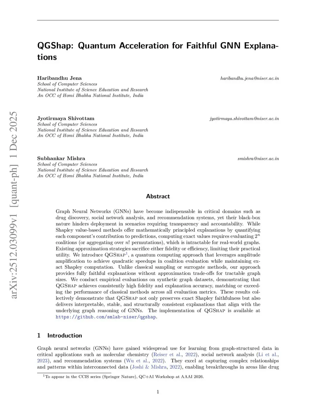 QGShap: Quantum Acceleration for Faithful GNN Explanations