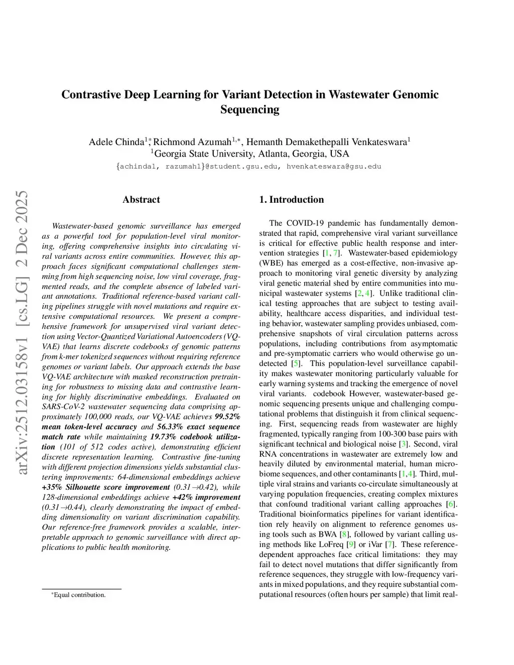 Contrastive Deep Learning for Variant Detection in Wastewater Genomic Sequencing