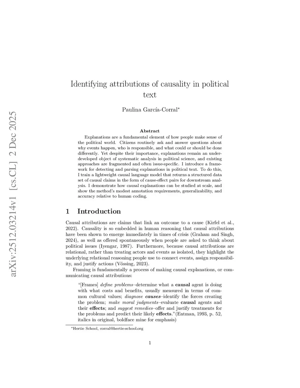 Explanations are a fundamental element of how people make sense of the political world. Citizens routinely ask and answer questions about why events happen, who is responsible, and what could or should be done differently. Yet despite their importance, explanations remain an underdeveloped object of systematic analysis in political science, and existing approaches are fragmented and often issue-specific. I introduce a framework for detecting and parsing explanations in political text. To do this, I train a lightweight causal language model that returns a structured data set of causal claims in the form of cause-effect pairs for downstream analysis. I demonstrate how causal explanations can be studied at scale, and show the method's modest annotation requirements, generalizability, and accuracy relative to human coding.