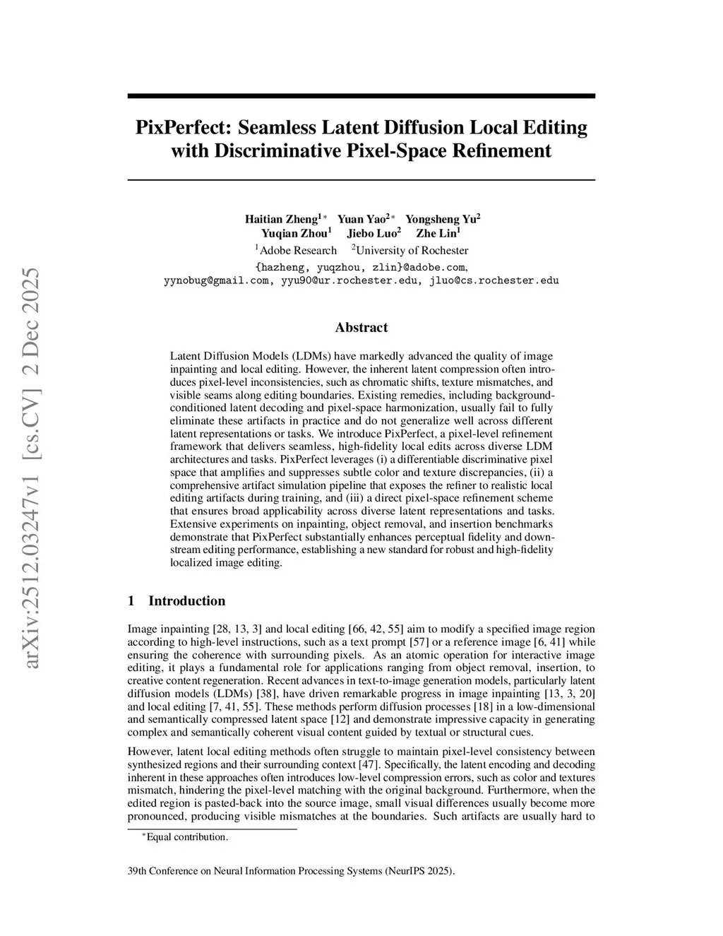 Latent Diffusion Models (LDMs) have markedly advanced the quality of image inpainting and local editing. However, the inherent latent compression often introduces pixel-level inconsistencies, such as chromatic shifts, texture mismatches, and visible seams along editing boundaries. Existing remedies, including background-conditioned latent decoding and pixel-space harmonization, usually fail to fully eliminate these artifacts in practice and do not generalize well across different latent representations or tasks. We introduce PixPerfect, a pixel-level refinement framework that delivers seamless, high-fidelity local edits across diverse LDM architectures and tasks. PixPerfect leverages (i) a differentiable discriminative pixel space that amplifies and suppresses subtle color and texture discrepancies, (ii) a comprehensive artifact simulation pipeline that exposes the refiner to realistic local editing artifacts during training, and (iii) a direct pixel-space refinement scheme that ensures broad applicability across diverse latent representations and tasks. Extensive experiments on inpainting, object removal, and insertion benchmarks demonstrate that PixPerfect substantially enhances perceptual fidelity and downstream editing performance, establishing a new standard for robust and high-fidelity localized image editing.