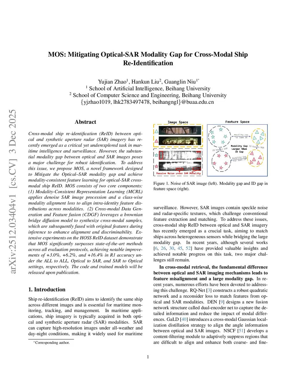 MOS: Mitigating Optical-SAR Modality Gap for Cross-Modal Ship Re-Identification