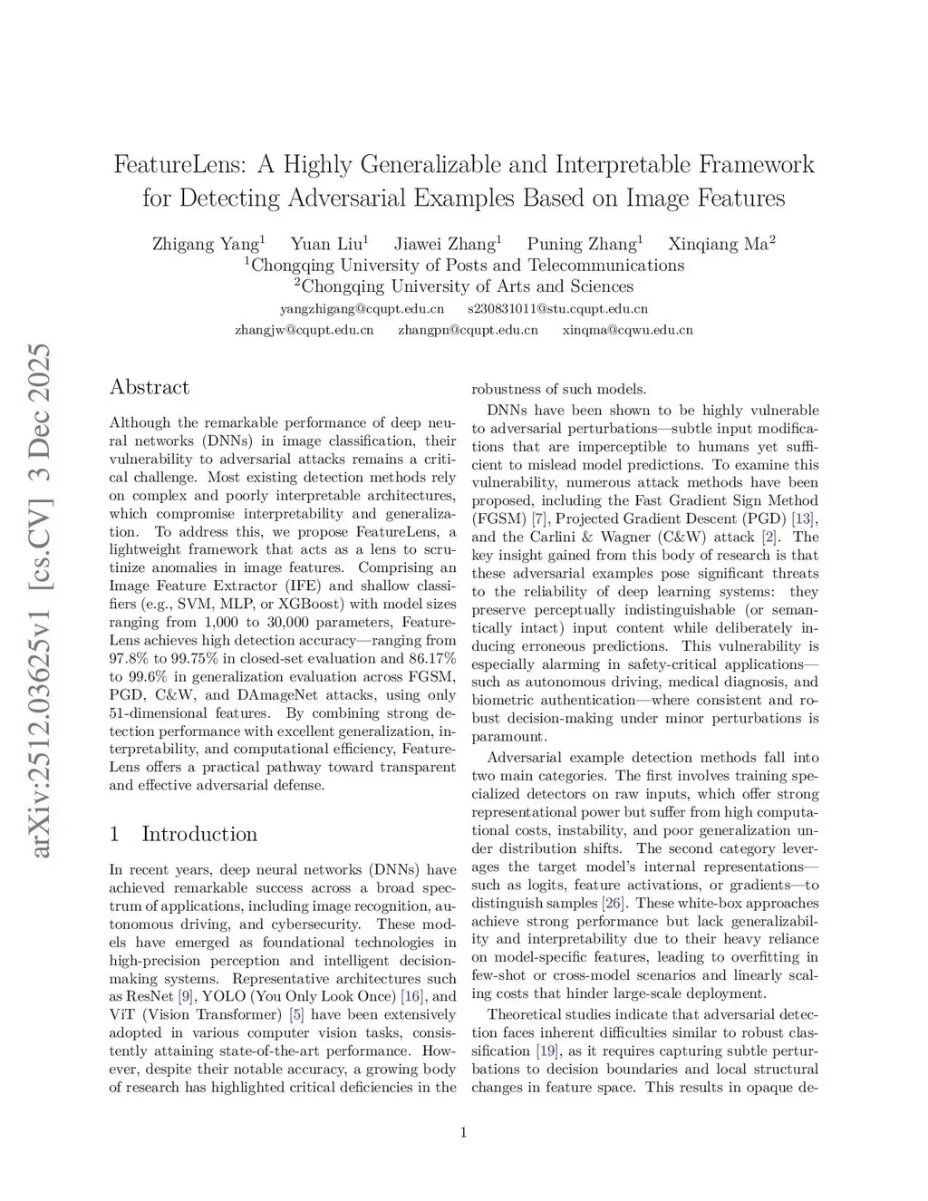 FeatureLens: A Highly Generalizable and Interpretable Framework for Detecting Adversarial Examples Based on Image Features
