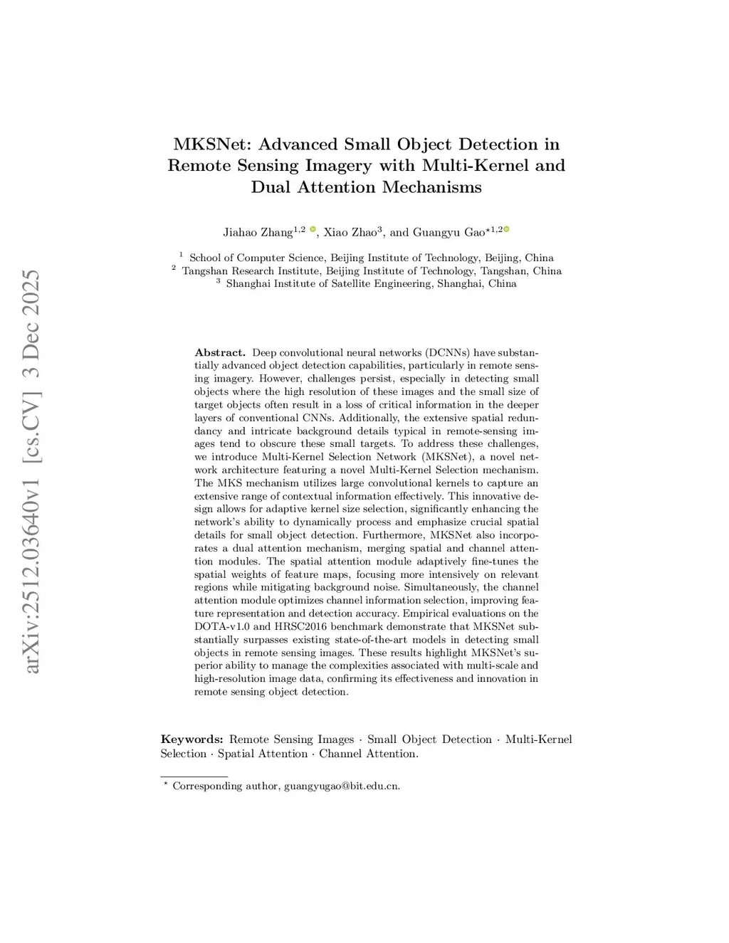 MKSNet: Advanced Small Object Detection in Remote Sensing Imagery with Multi-Kernel and Dual Attention Mechanisms