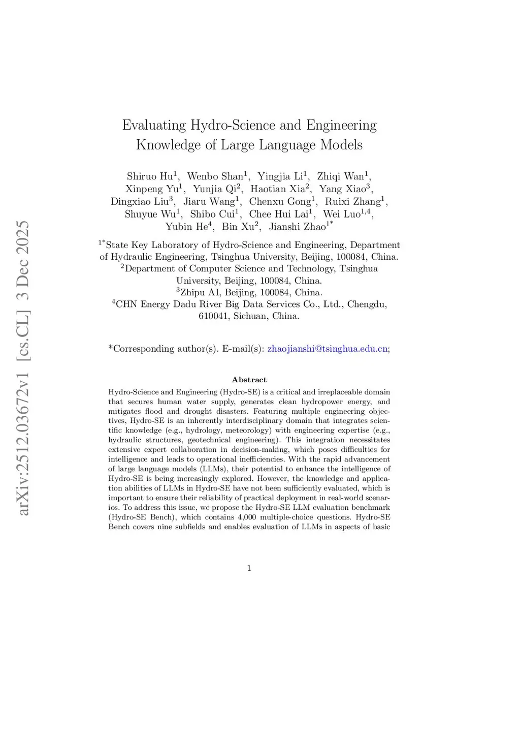 Evaluating Hydro-Science and Engineering Knowledge of Large Language Models