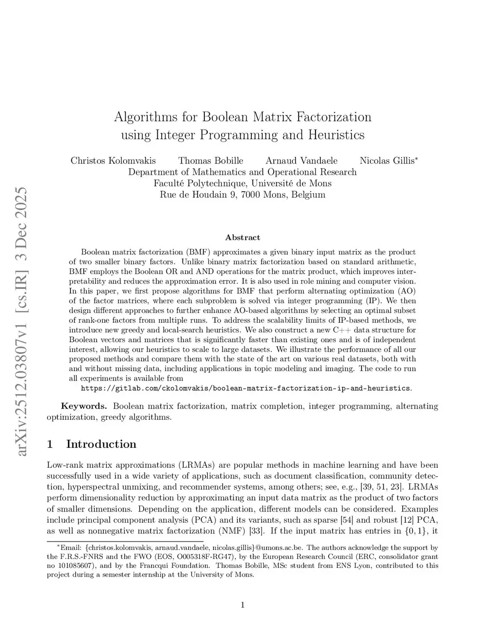 Algorithms for Boolean Matrix Factorization using Integer Programming and Heuristics