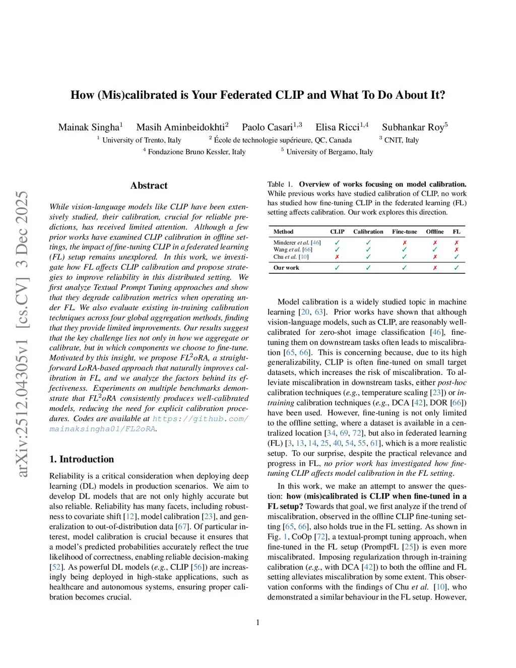 While vision-language models like CLIP have been extensively studied, their calibration, crucial for reliable predictions, has received limited attention. Although a few prior works have examined CLIP calibration in offline settings, the impact of fine-tuning CLIP in a federated learning (FL) setup remains unexplored. In this work, we investigate how FL affects CLIP calibration and propose strategies to improve reliability in this distributed setting. We first analyze Textual Prompt Tuning approaches and show that they degrade calibration metrics when operating under FL. We also evaluate existing in-training calibration techniques across four global aggregation methods, finding that they provide limited improvements. Our results suggest that the key challenge lies not only in how we aggregate or calibrate, but in which components we choose to fine-tune. Motivated by this insight, we propose , a straightforward LoRA-based approach that naturally improves calibration in FL, and we analyze the factors behind its effectiveness. Experiments on multiple benchmarks demonstrate that consistently produces well-calibrated models, reducing the need for explicit calibration procedures. Codes are available atthis https URL.