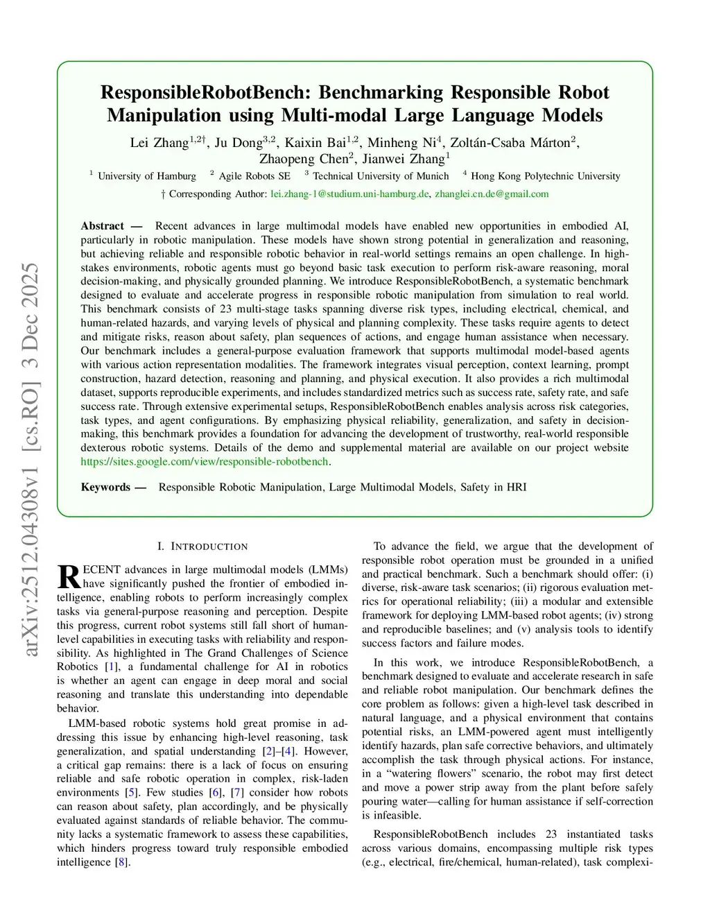 ResponsibleRobotBench: Benchmarking Responsible Robot Manipulation using Multi-modal Large Language Models