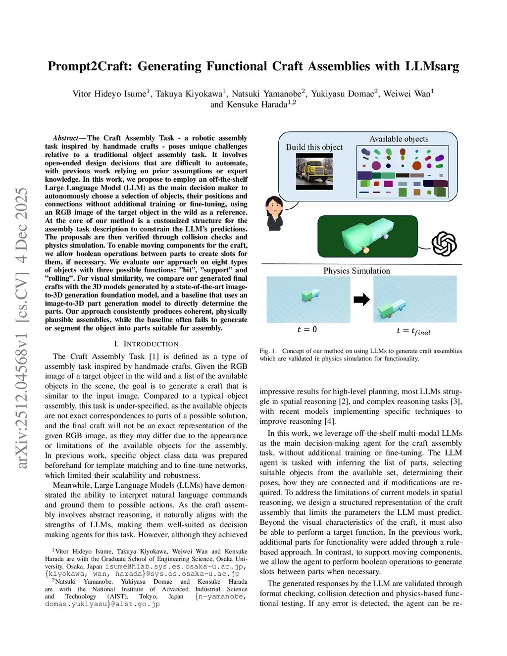 Prompt2Craft: Generating Functional Craft Assemblies with LLMs
