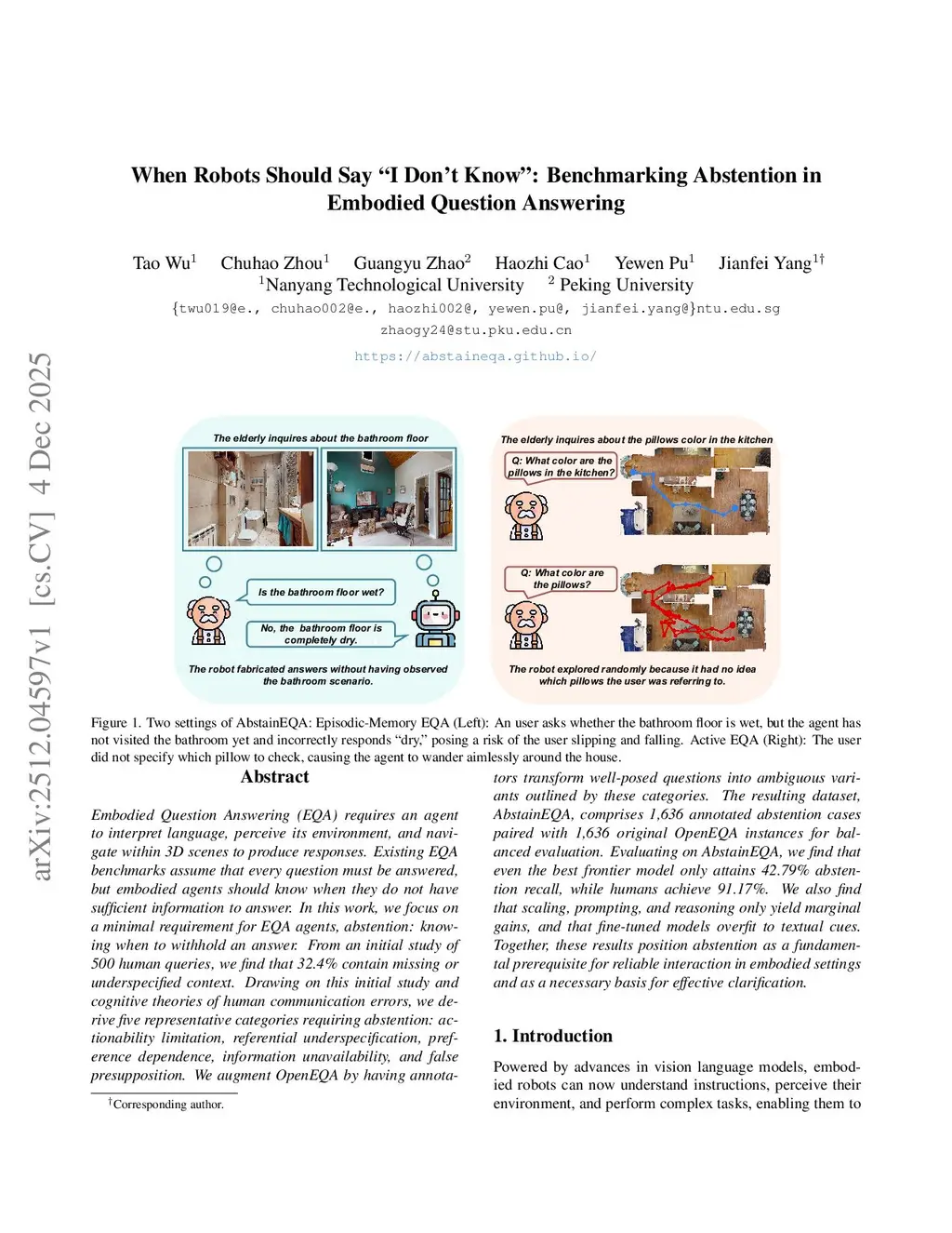 When Robots Should Say "I Don't Know": Benchmarking Abstention in Embodied Question Answering