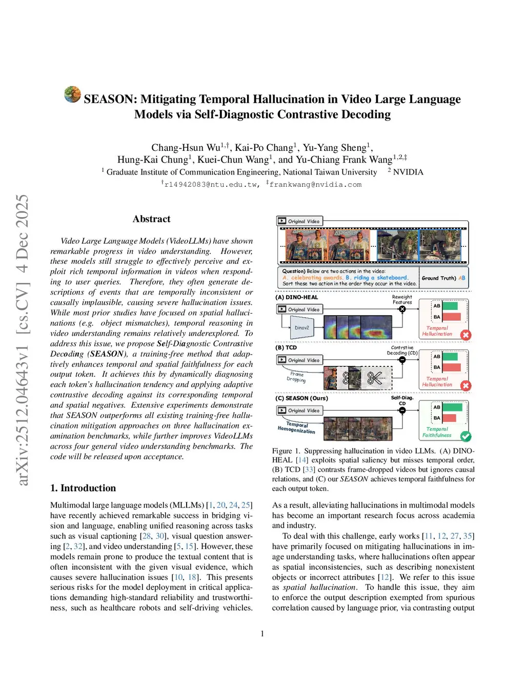 SEASON: Mitigating Temporal Hallucination in Video Large Language Models via Self-Diagnostic Contrastive Decoding