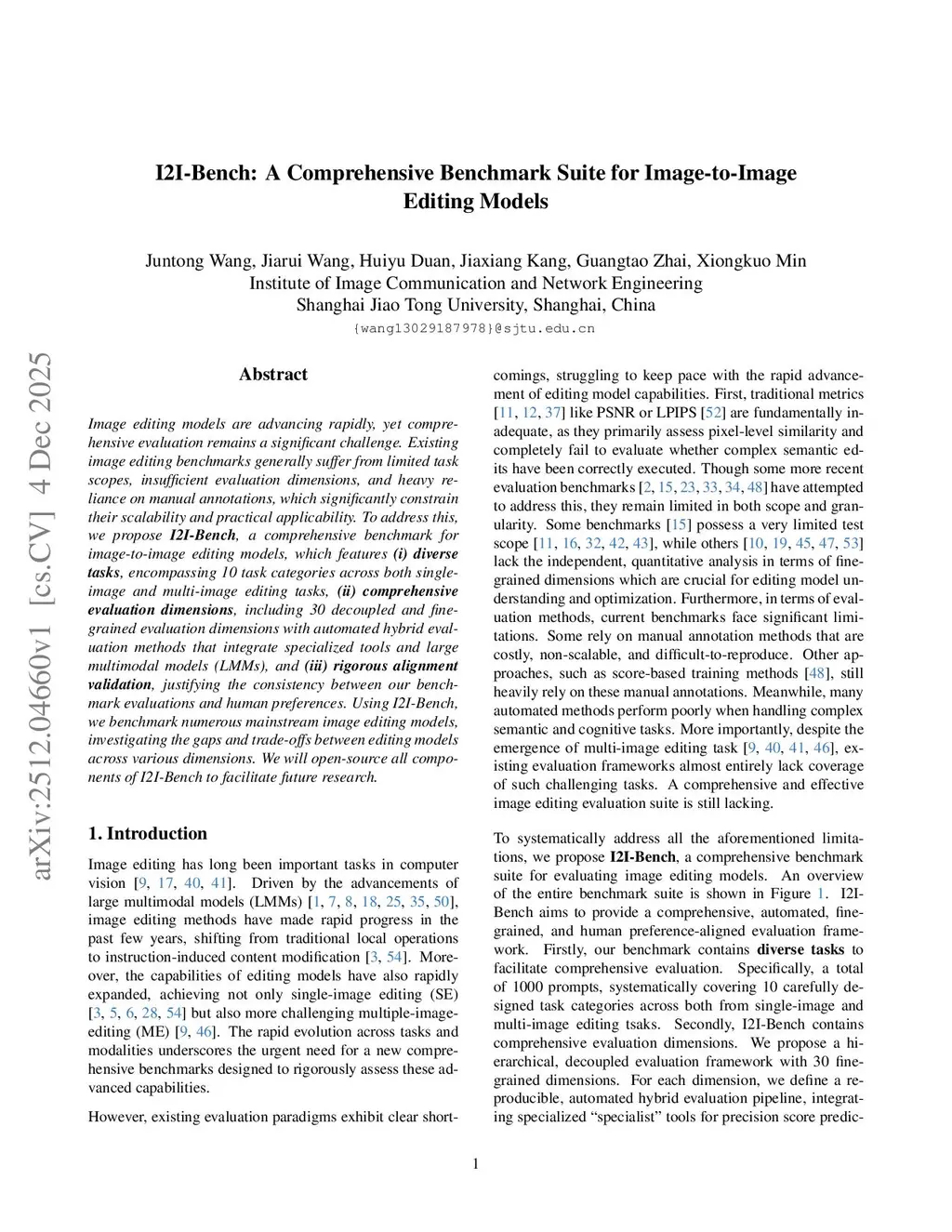 I2I-Bench: A Comprehensive Benchmark Suite for Image-to-Image Editing Models