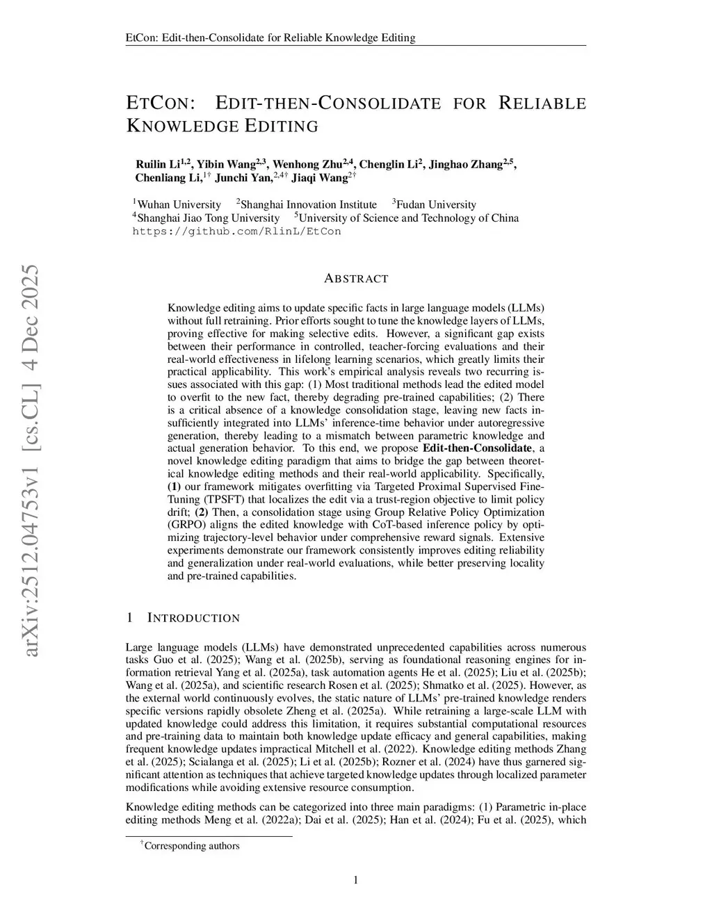 EtCon: Edit-then-Consolidate for Reliable Knowledge Editing