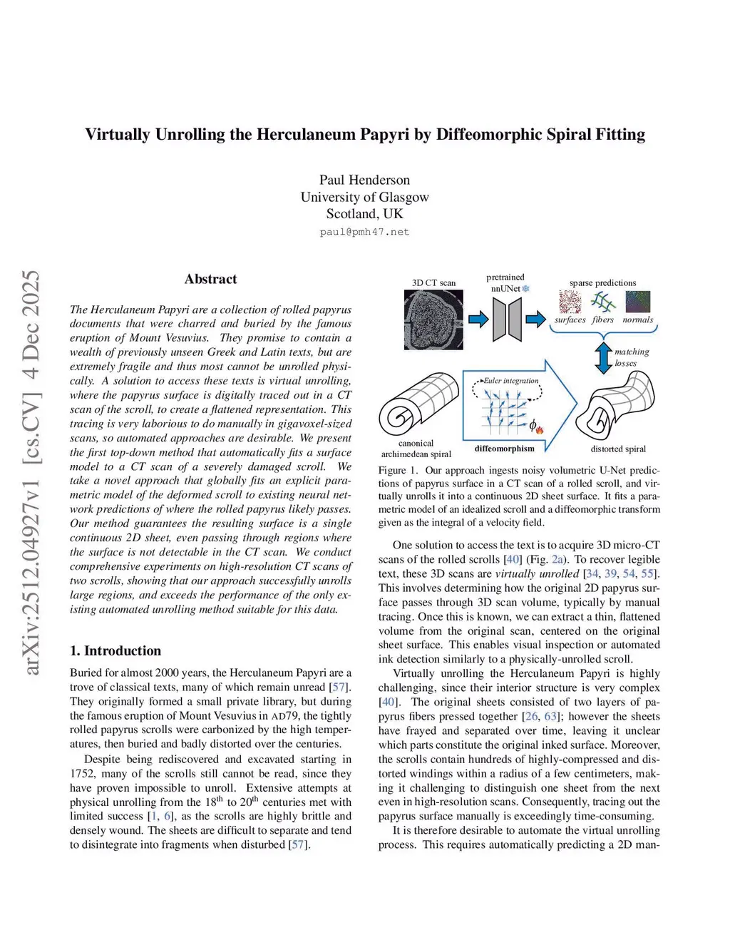 Virtually Unrolling the Herculaneum Papyri by Diffeomorphic Spiral Fitting