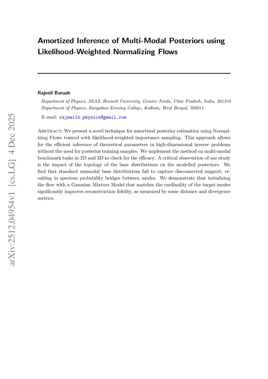 We present a novel technique for amortized posterior estimation using Normalizing Flows trained with likelihood-weighted importance sampling. This approach allows for the efficient inference of theoretical parameters in high-dimensional inverse problems without the need for posterior training samples. We implement the method on multi-modal benchmark tasks in 2D and 3D to check for the efficacy. A critical observation of our study is the impact of the topology of the base distributions on the modelled posteriors. We find that standard unimodal base distributions fail to capture disconnected support, resulting in spurious probability bridges between modes. We demonstrate that initializing the flow with a Gaussian Mixture Model that matches the cardinality of the target modes significantly improves reconstruction fidelity, as measured by some distance and divergence metrics.