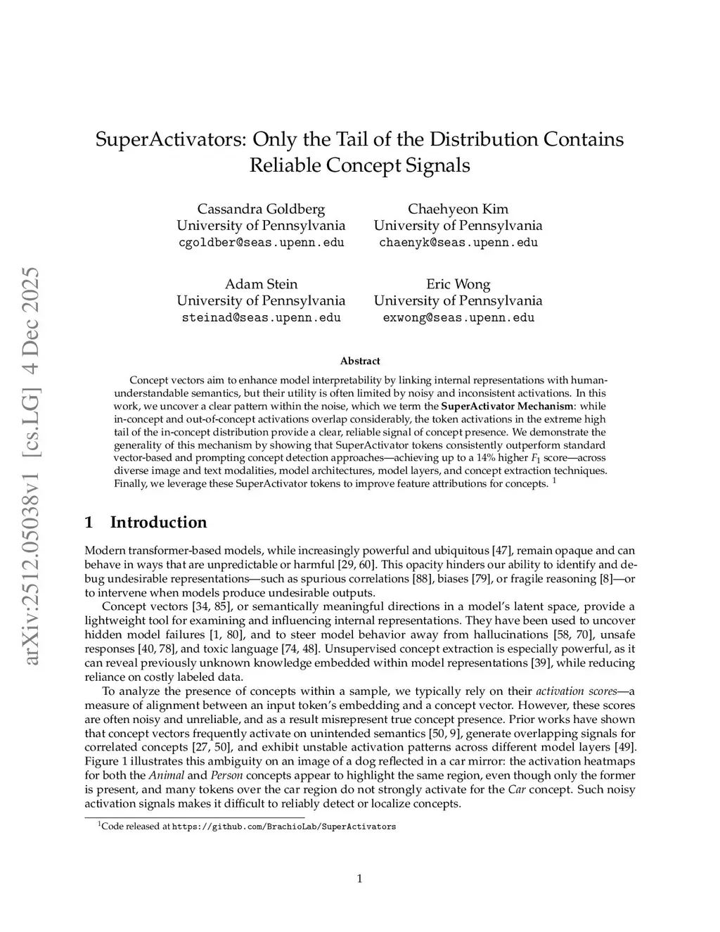 Concept vectors aim to enhance model interpretability by linking internal representations with human-understandable semantics, but their utility is often limited by noisy and inconsistent activations. In this work, we uncover a clear pattern within the noise, which we term the SuperActivator Mechanism: while in-concept and out-of-concept activations overlap considerably, the token activations in the extreme high tail of the in-concept distribution provide a reliable signal of concept presence. We demonstrate the generality of this mechanism by showing that SuperActivator tokens consistently outperform standard vector-based and prompting concept detection approaches, achieving up to a 14% higher F1 score across image and text modalities, model architectures, model layers, and concept extraction techniques. Finally, we leverage SuperActivator tokens to improve feature attributions for concepts.