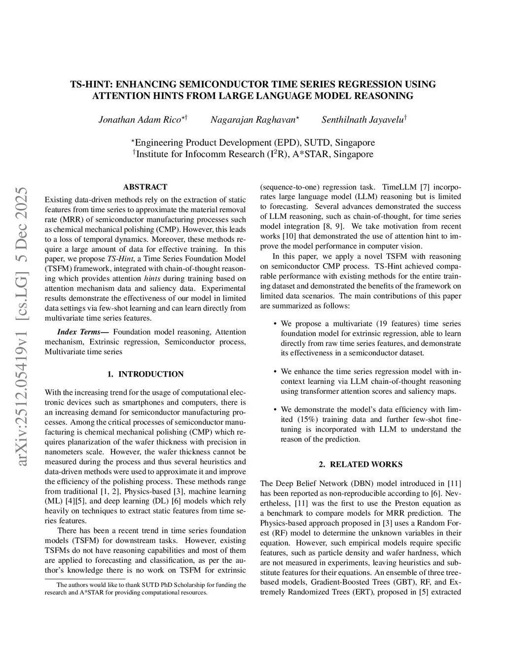 Existing data-driven methods rely on the extraction of static features from time series to approximate the material removal rate (MRR) of semiconductor manufacturing processes such as chemical mechanical polishing (CMP). However, this leads to a loss of temporal dynamics. Moreover, these methods require a large amount of data for effective training. In this paper, we propose TS-Hint, a Time Series Foundation Model (TSFM) framework, integrated with chain-of-thought reasoning which provides attention hints during training based on attention mechanism data and saliency data. Experimental results demonstrate the effectiveness of our model in limited data settings via few-shot learning and can learn directly from multivariate time series features.