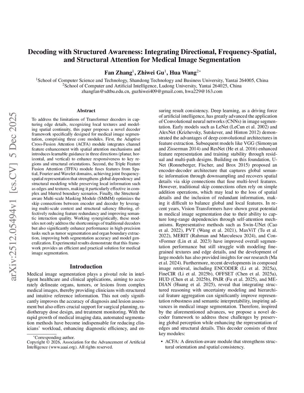 To address the limitations of Transformer decoders in capturing edge details, recognizing local textures and modeling spatial continuity, this paper proposes a novel decoder framework specifically designed for medical image segmentation, comprising three core modules. First, the Adaptive Cross-Fusion Attention (ACFA) module integrates channel feature enhancement with spatial attention mechanisms and introduces learnable guidance in three directions (planar, horizontal, and vertical) to enhance responsiveness to key regions and structural orientations. Second, the Triple Feature Fusion Attention (TFFA) module fuses features from Spatial, Fourier and Wavelet domains, achieving joint frequency-spatial representation that strengthens global dependency and structural modeling while preserving local information such as edges and textures, making it particularly effective in complex and blurred boundary scenarios. Finally, the Structural-aware Multi-scale Masking Module (SMMM) optimizes the skip connections between encoder and decoder by leveraging multi-scale context and structural saliency filtering, effectively reducing feature redundancy and improving semantic interaction quality. Working synergistically, these modules not only address the shortcomings of traditional decoders but also significantly enhance performance in high-precision tasks such as tumor segmentation and organ boundary extraction, improving both segmentation accuracy and model generalization. Experimental results demonstrate that this framework provides an efficient and practical solution for medical image segmentation.