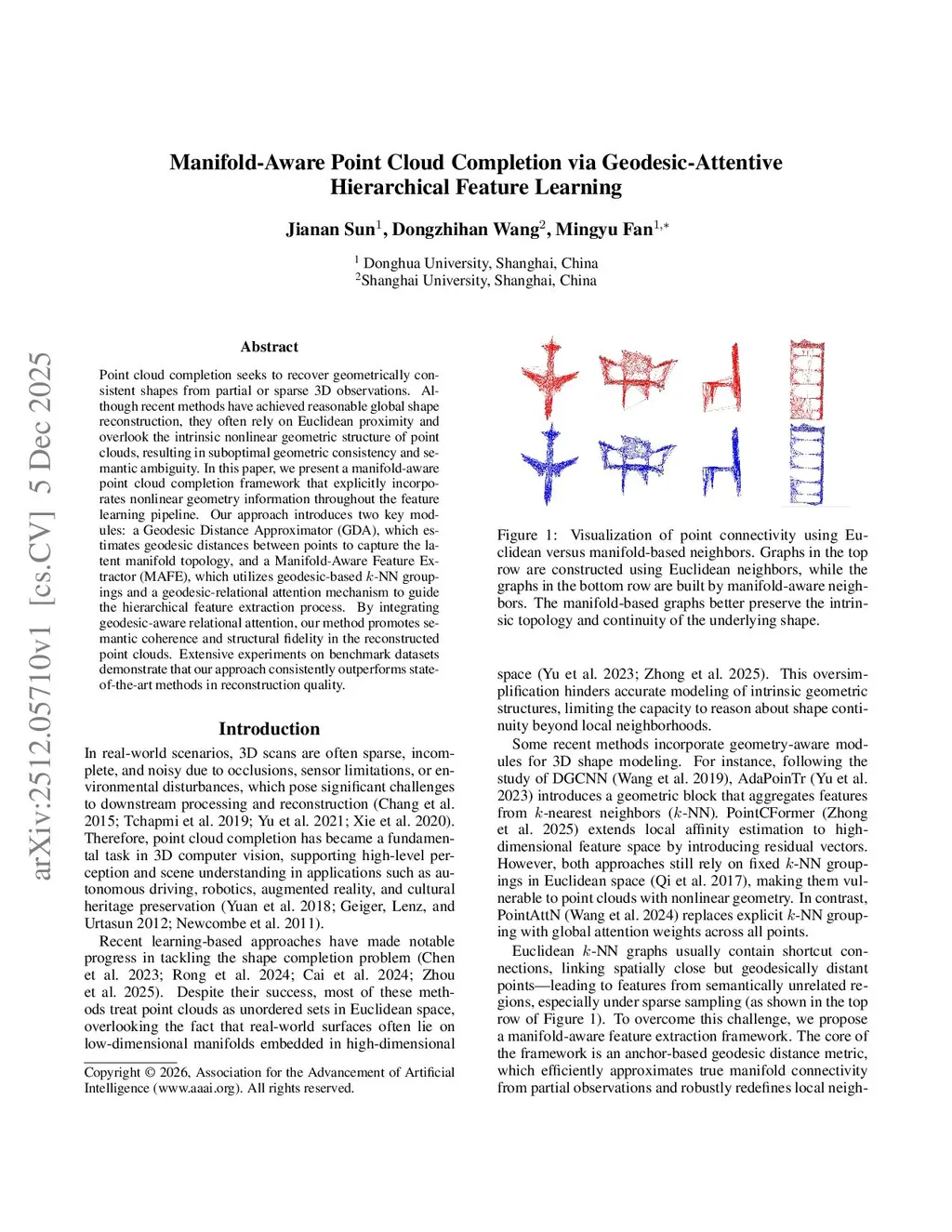 Manifold-Aware Point Cloud Completion via Geodesic-Attentive Hierarchical Feature Learning