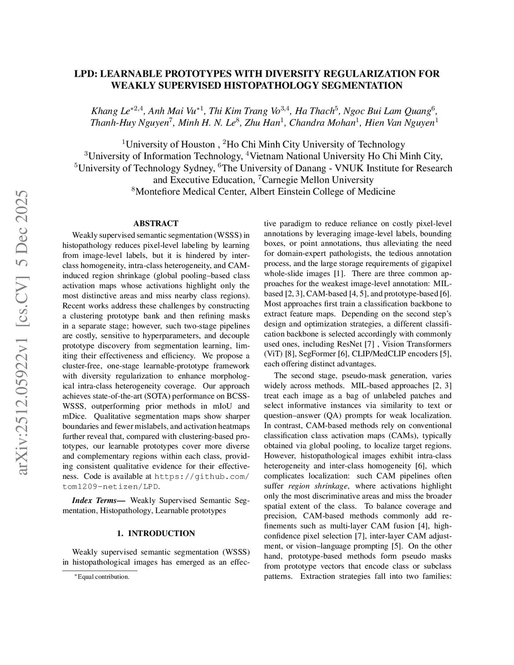 LPD: Learnable Prototypes with Diversity Regularization for Weakly Supervised Histopathology Segmentation