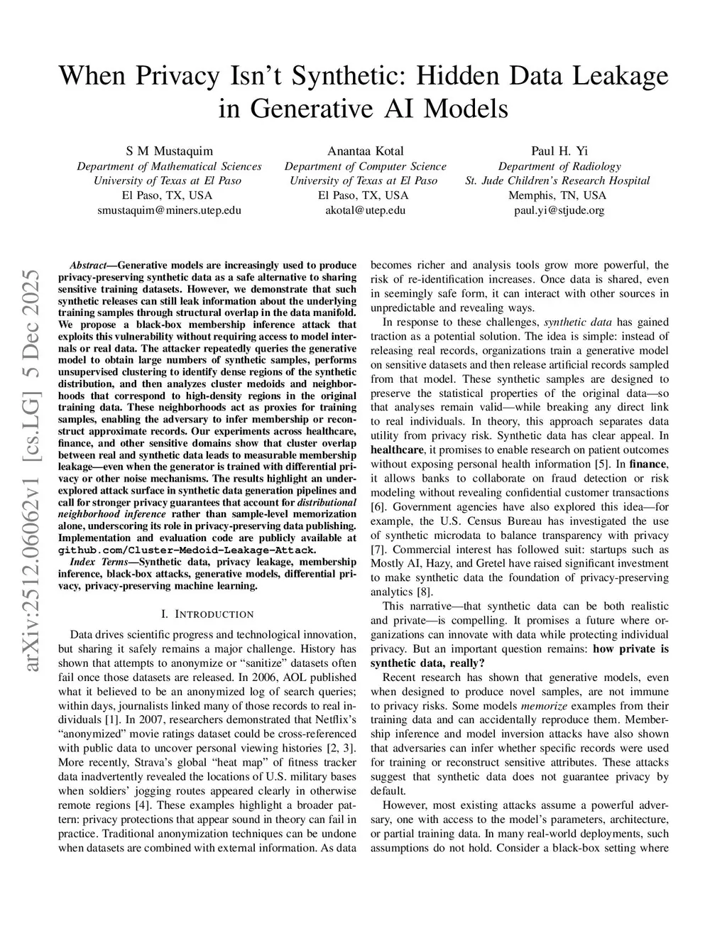 When Privacy Isn't Synthetic: Hidden Data Leakage in Generative AI Models