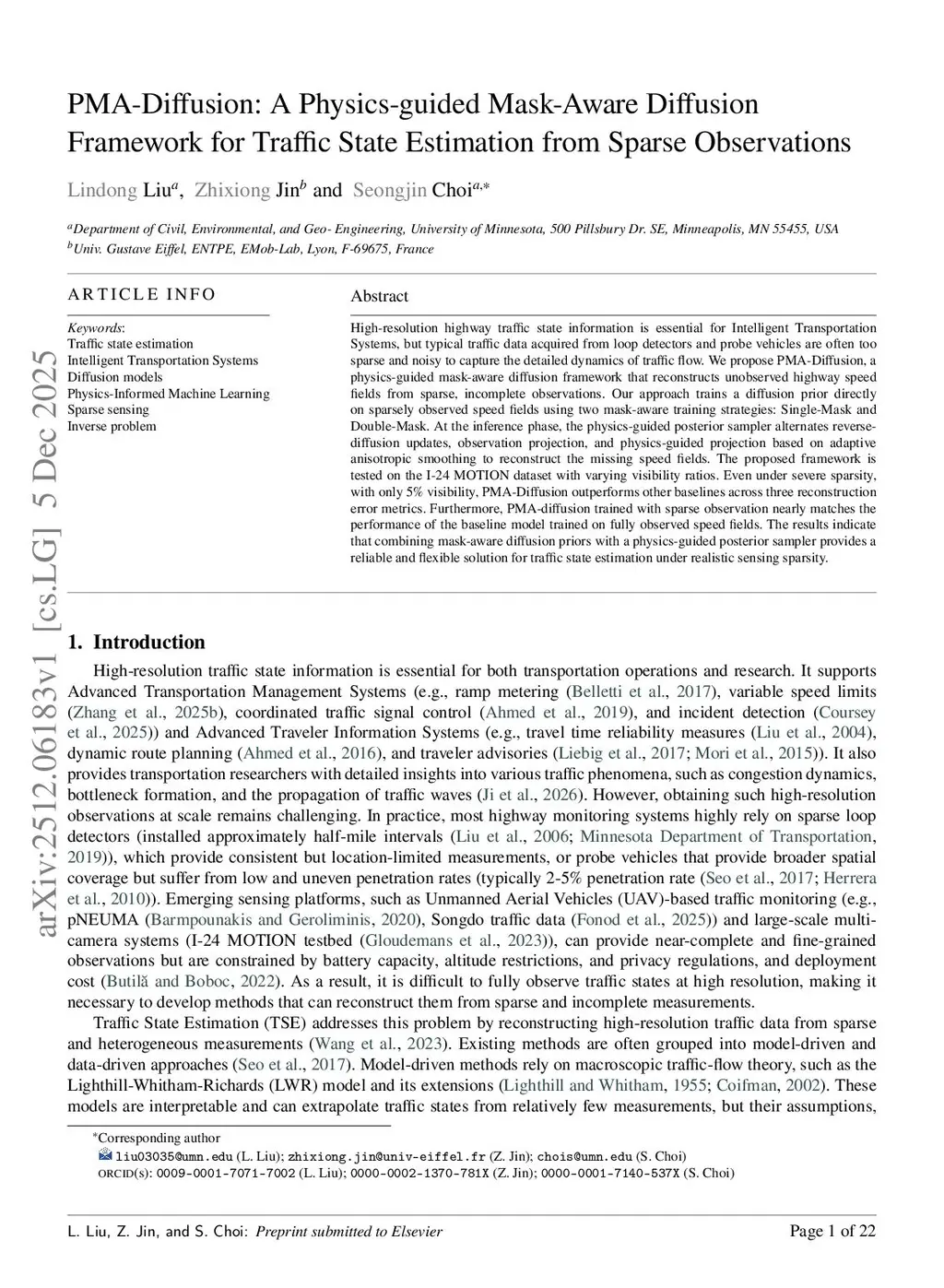High-resolution highway traffic state information is essential for Intelligent Transportation Systems, but typical traffic data acquired from loop detectors and probe vehicles are often too sparse and noisy to capture the detailed dynamics of traffic flow. We propose PMA-Diffusion, a physics-guided mask-aware diffusion framework that reconstructs unobserved highway speed fields from sparse, incomplete observations. Our approach trains a diffusion prior directly on sparsely observed speed fields using two mask-aware training strategies: Single-Mask and Double-Mask. At the inference phase, the physics-guided posterior sampler alternates reverse-diffusion updates, observation projection, and physics-guided projection based on adaptive anisotropic smoothing to reconstruct the missing speed fields. The proposed framework is tested on the I-24 MOTION dataset with varying visibility ratios. Even under severe sparsity, with only 5% visibility, PMA-Diffusion outperforms other baselines across three reconstruction error metrics. Furthermore, PMA-diffusion trained with sparse observation nearly matches the performance of the baseline model trained on fully observed speed fields. The results indicate that combining mask-aware diffusion priors with a physics-guided posterior sampler provides a reliable and flexible solution for traffic state estimation under realistic sensing sparsity.