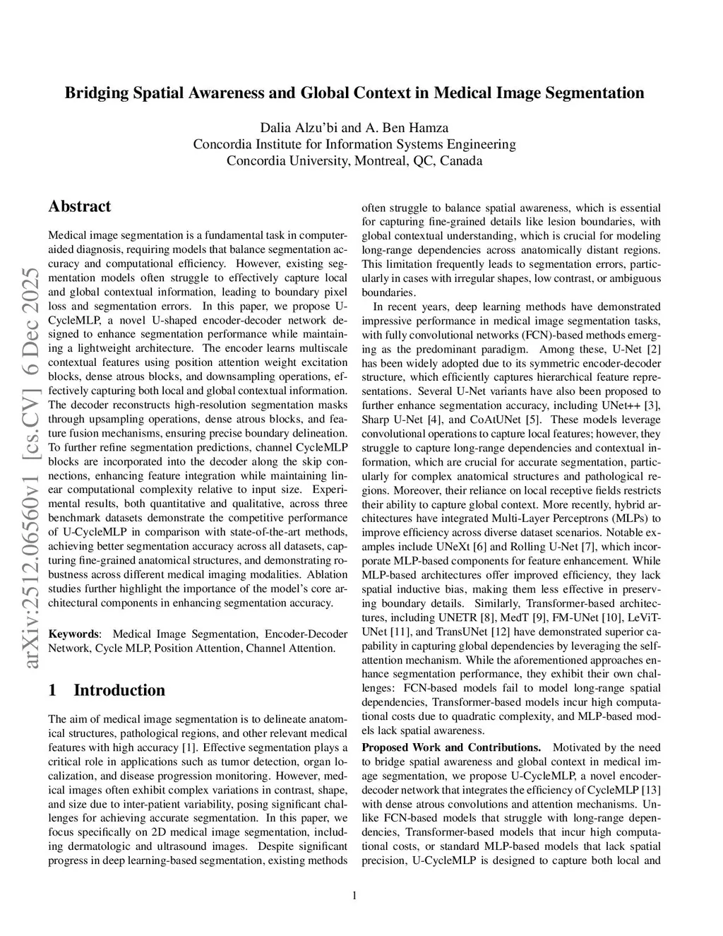 Bridging spatial awareness and global context in medical image segmentation