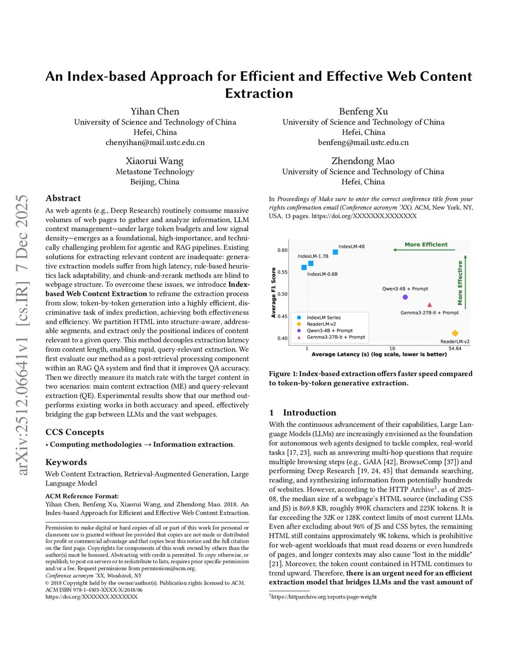 An Index-based Approach for Efficient and Effective Web Content Extraction
