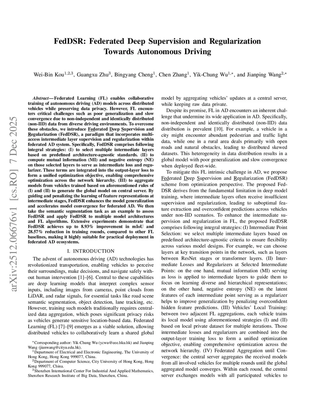 FedDSR: Federated Deep Supervision and Regularization Towards Autonomous Driving