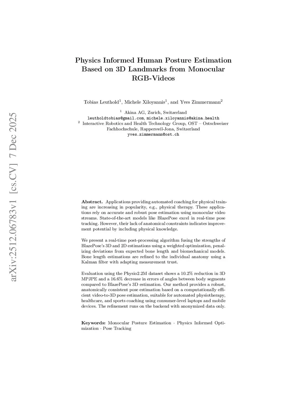 Physics Informed Human Posture Estimation Based on 3D Landmarks from Monocular RGB-Videos