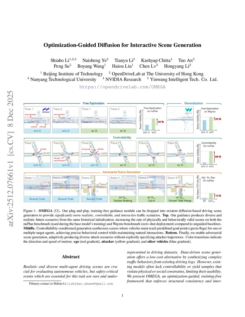 Realistic and diverse multi-agent driving scenes are crucial for evaluating autonomous vehicles, but safety-critical events which are essential for this task are rare and underrepresented in driving datasets. Data-driven scene generation offers a low-cost alternative by synthesizing complex traffic behaviors from existing driving logs. However, existing models often lack controllability or yield samples that violate physical or social constraints, limiting their usability. We present OMEGA, an optimization-guided, training-free framework that enforces structural consistency and interaction awareness during diffusion-based sampling from a scene generation model. OMEGA re-anchors each reverse diffusion step via constrained optimization, steering the generation towards physically plausible and behaviorally coherent trajectories. Building on this framework, we formulate ego-attacker interactions as a game-theoretic optimization in the distribution space, approximating Nash equilibria to generate realistic, safety-critical adversarial scenarios. Experiments on nuPlan and Waymo show that OMEGA improves generation realism, consistency, and controllability, increasing the ratio of physically and behaviorally valid scenes from 32.35% to 72.27% for free exploration capabilities, and from 11% to 80% for controllability-focused generation. Our approach can also generate more near-collision frames with a time-to-collision under three seconds while maintaining the overall scene realism.
