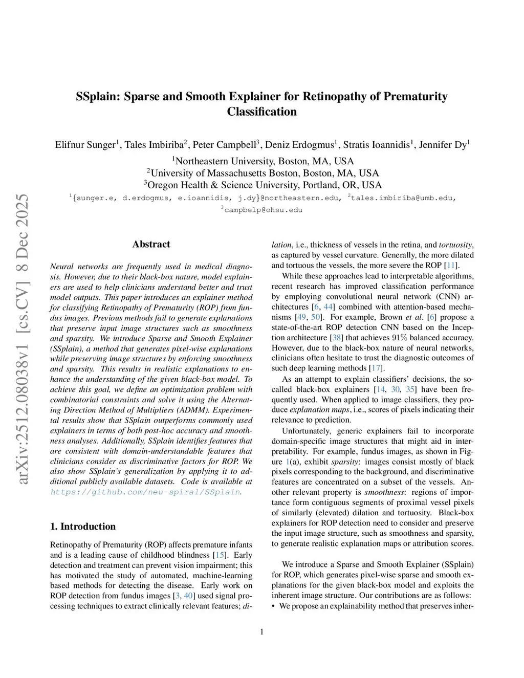 SSplain: Sparse and Smooth Explainer for Retinopathy of Prematurity Classification