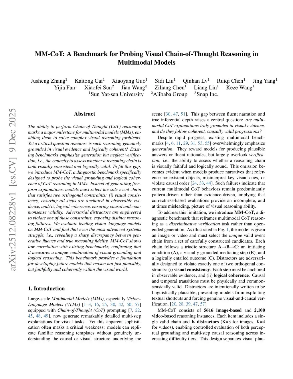 The ability to perform Chain-of-Thought (CoT) reasoning marks a major milestone for multimodal models (MMs), enabling them to solve complex visual reasoning problems. Yet a critical question remains: is such reasoning genuinely grounded in visual evidence and logically coherent? Existing benchmarks emphasize generation but neglect verification, i.e., the capacity to assess whether a reasoning chain is both visually consistent and logically valid. To fill this gap, we introduce MM-CoT, a diagnostic benchmark specifically designed to probe the visual grounding and logical coherence of CoT reasoning in MMs. Instead of generating free-form explanations, models must select the sole event chain that satisfies two orthogonal constraints: (i) visual consistency, ensuring all steps are anchored in observable evidence, and (ii) logical coherence, ensuring causal and commonsense validity. Adversarial distractors are engineered to violate one of these constraints, exposing distinct reasoning failures. We evaluate leading vision-language models on MM-CoT and find that even the most advanced systems struggle, revealing a sharp discrepancy between generative fluency and true reasoning fidelity. MM-CoT shows low correlation with existing benchmarks, confirming that it measures a unique combination of visual grounding and logical reasoning. This benchmark provides a foundation for developing future models that reason not just plausibly, but faithfully and coherently within the visual world.