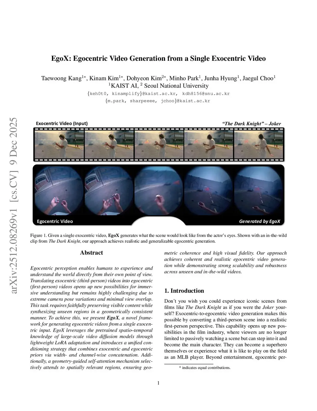 EgoX: Egocentric Video Generation from a Single Exocentric Video