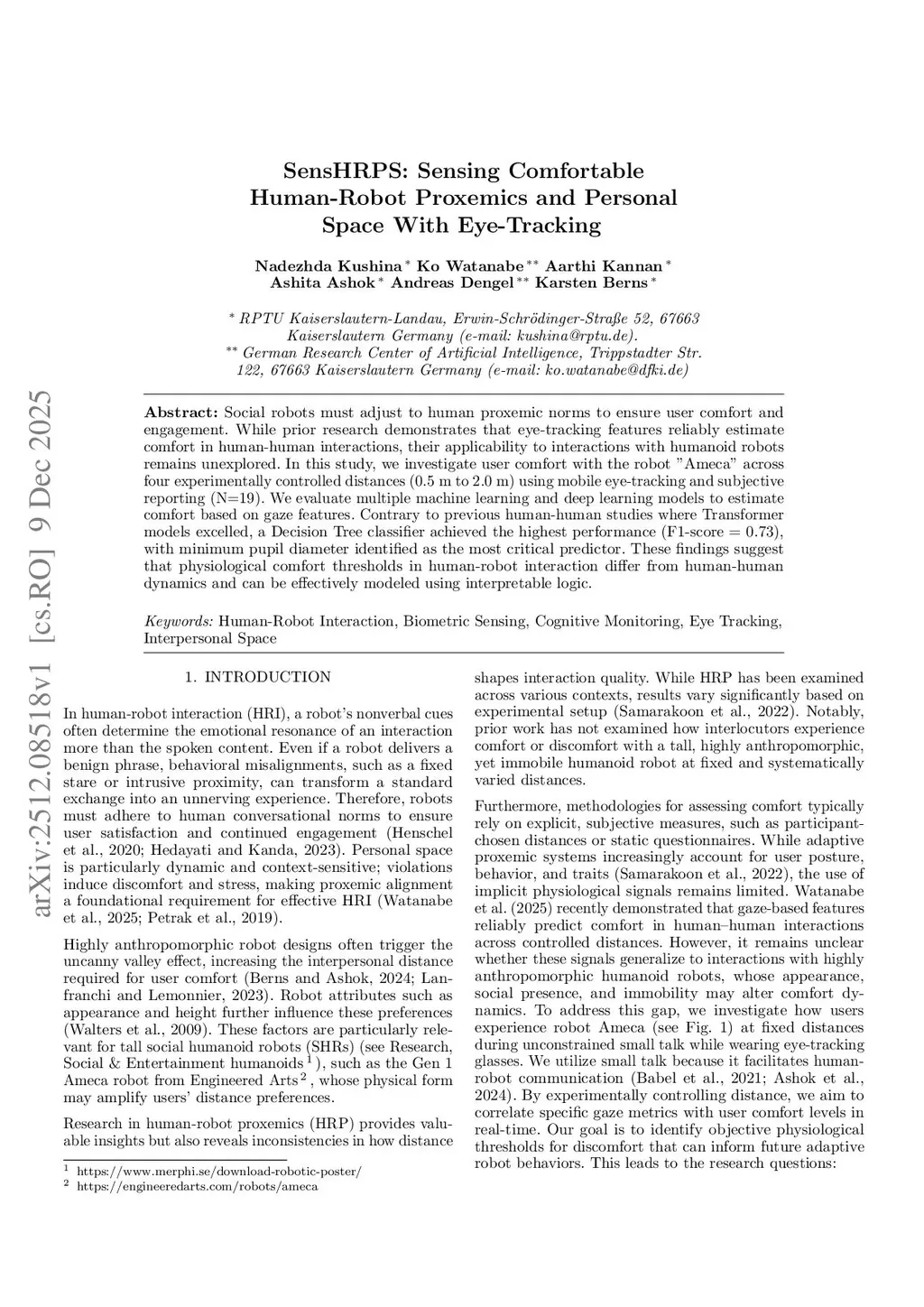 SensHRPS: Sensing Comfortable Human-Robot Proxemics and Personal Space With Eye-Tracking