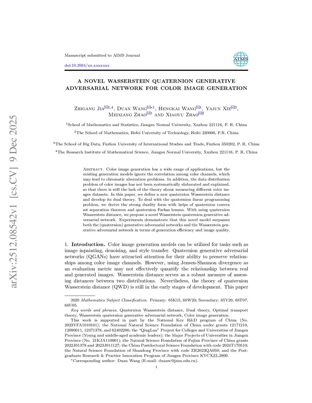 A Novel Wasserstein Quaternion Generative Adversarial Network for Color Image Generation