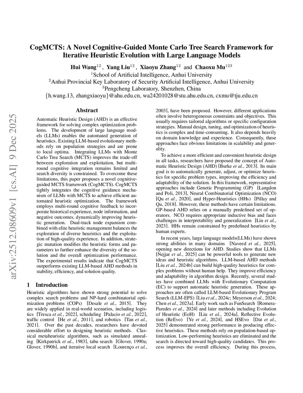 CogMCTS: A Novel Cognitive-Guided Monte Carlo Tree Search Framework for Iterative Heuristic Evolution with Large Language Models