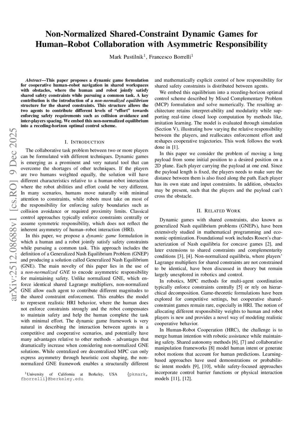 Non Normalized Shared-Constraint Dynamic Games for Human-Robot Collaboration with Asymmetric Responsibility