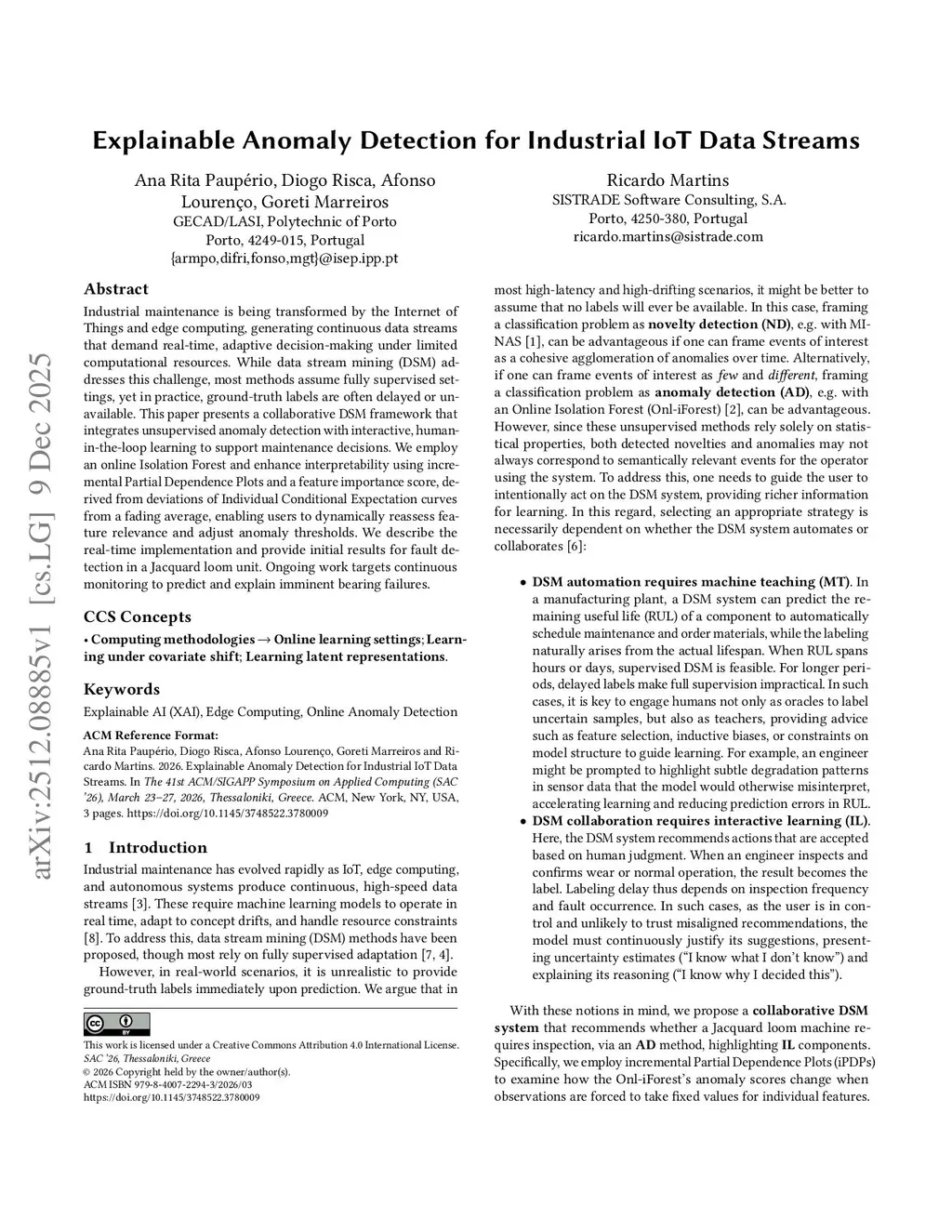 Industrial maintenance is being transformed by the Internet of Things and edge computing, generating continuous data streams that demand real-time, adaptive decision-making under limited computational resources. While data stream mining (DSM) addresses this challenge, most methods assume fully supervised settings, yet in practice, ground-truth labels are often delayed or unavailable. This paper presents a collaborative DSM framework that integrates unsupervised anomaly detection with interactive, human-in-the-loop learning to support maintenance decisions. We employ an online Isolation Forest and enhance interpretability using incremental Partial Dependence Plots and a feature importance score, derived from deviations of Individual Conditional Expectation curves from a fading average, enabling users to dynamically reassess feature relevance and adjust anomaly thresholds. We describe the real-time implementation and provide initial results for fault detection in a Jacquard loom unit. Ongoing work targets continuous monitoring to predict and explain imminent bearing failures.