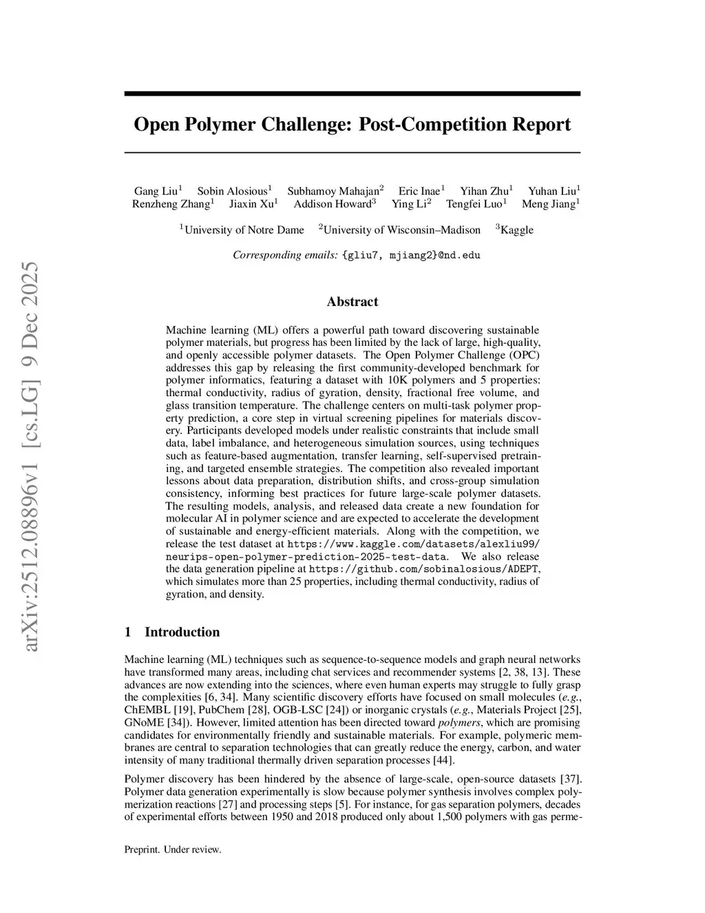 Open Polymer Challenge: Post-Competition Report