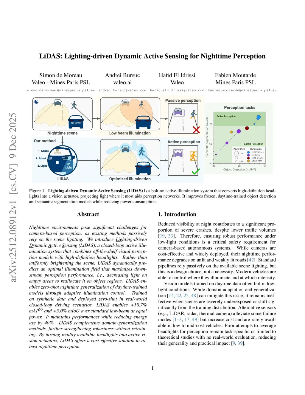 LiDAS: Lighting-driven Dynamic Active Sensing for Nighttime Perception