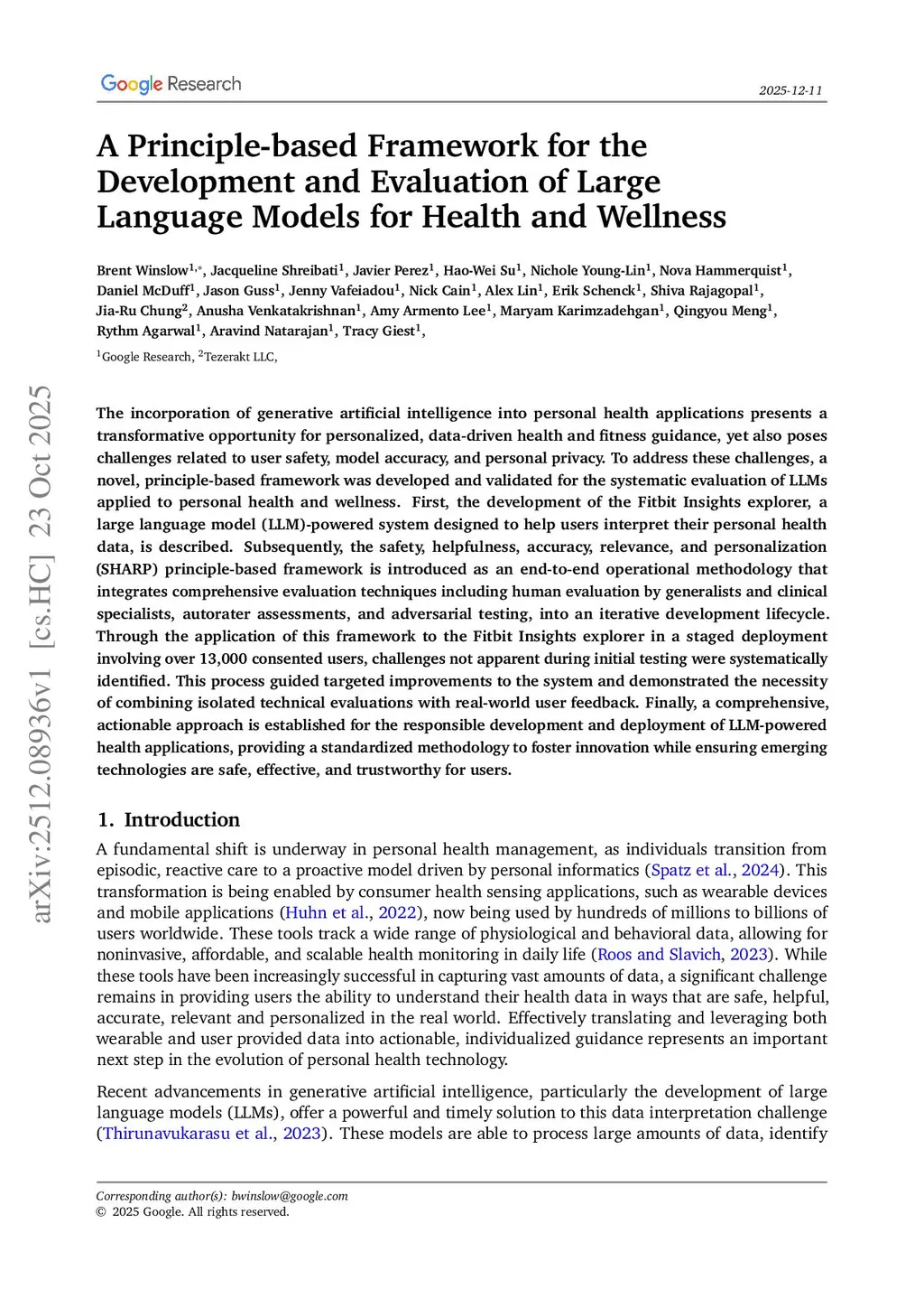 The incorporation of generative artificial intelligence into personal health applications presents a transformative opportunity for personalized, data-driven health and fitness guidance, yet also poses challenges related to user safety, model accuracy, and personal privacy. To address these challenges, a novel, principle-based framework was developed and validated for the systematic evaluation of LLMs applied to personal health and wellness. First, the development of the Fitbit Insights explorer, a large language model (LLM)-powered system designed to help users interpret their personal health data, is described. Subsequently, the safety, helpfulness, accuracy, relevance, and personalization (SHARP) principle-based framework is introduced as an end-to-end operational methodology that integrates comprehensive evaluation techniques including human evaluation by generalists and clinical specialists, autorater assessments, and adversarial testing, into an iterative development lifecycle. Through the application of this framework to the Fitbit Insights explorer in a staged deployment involving over 13,000 consented users, challenges not apparent during initial testing were systematically identified. This process guided targeted improvements to the system and demonstrated the necessity of combining isolated technical evaluations with real-world user feedback. Finally, a comprehensive, actionable approach is established for the responsible development and deployment of LLM-powered health applications, providing a standardized methodology to foster innovation while ensuring emerging technologies are safe, effective, and trustworthy for users.